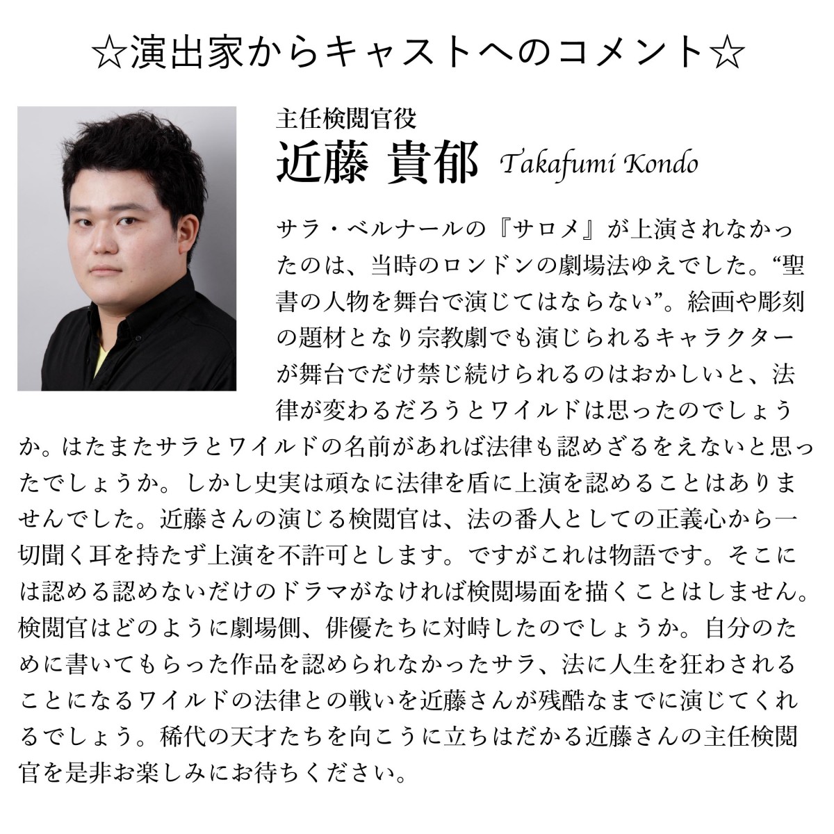 2026 サラ・ベルナールの『サロメ』 近藤貴郁 出演
