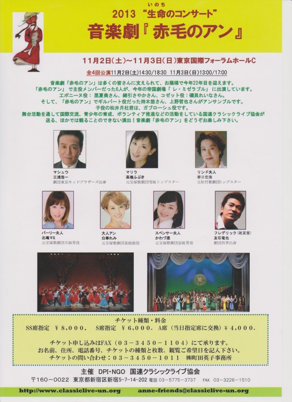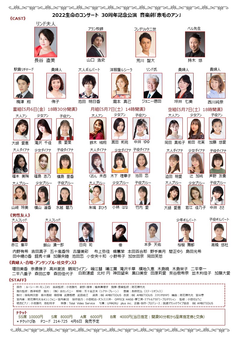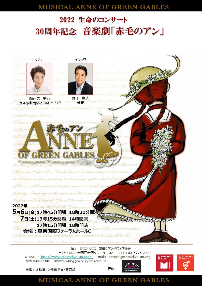 音楽劇 赤毛のアン 瀬戸内美八・美雪花代・雅景・愛那結梨・夏樹弘・瀧田蘭丸・芳月実桜 出演