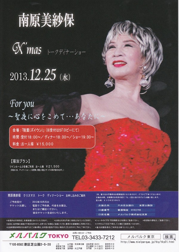 南原美砂保 2014年12月1日 ディナーショー